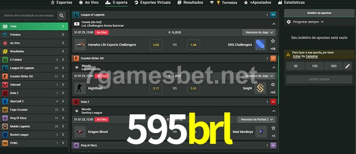 O 595brl oferece uma grande seleção de opções de apostas em e-sports com probabilidades competitivas